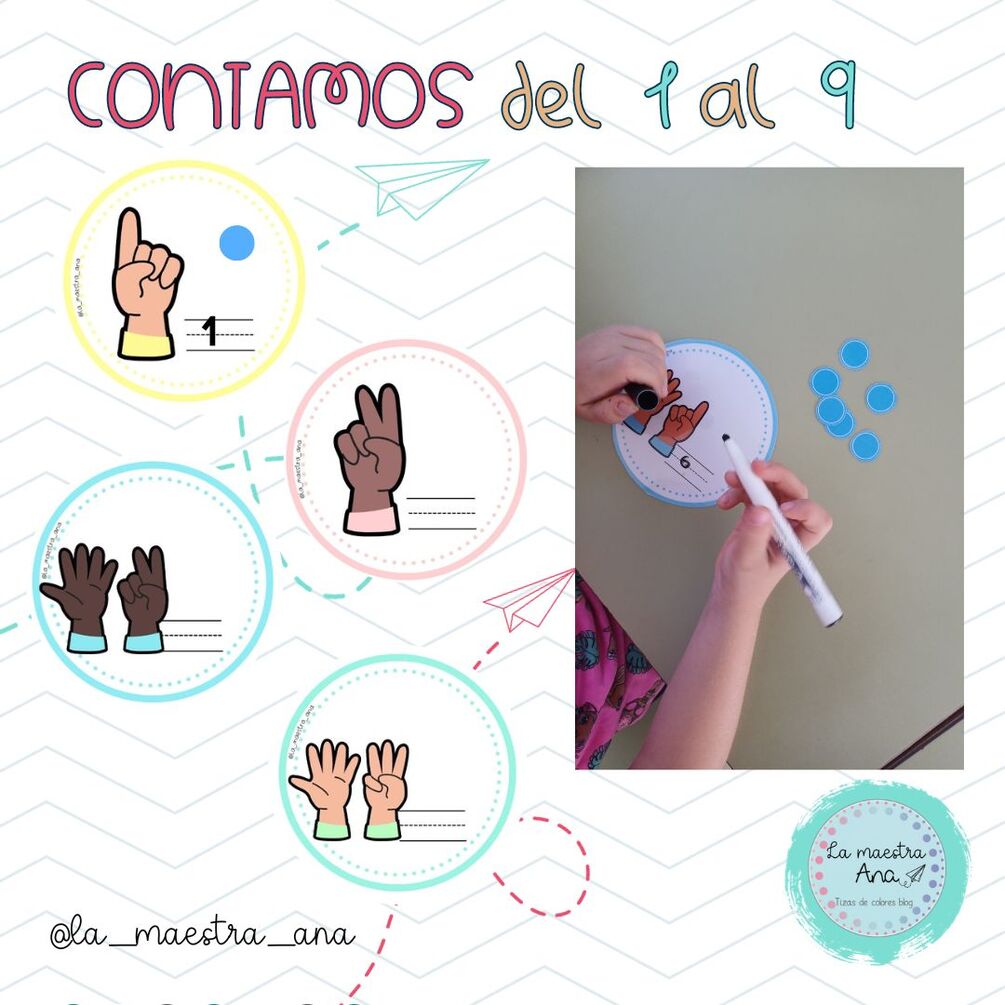 Fichas manipulativas para escribir y asociar cantidades del 1 al 9.