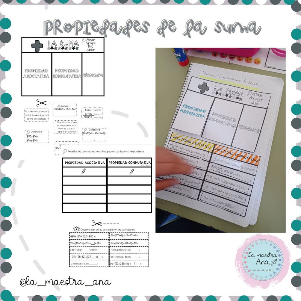 Dos fichas de trabajo (flipbook y recortable) para trabajar las propiedades de la suma.